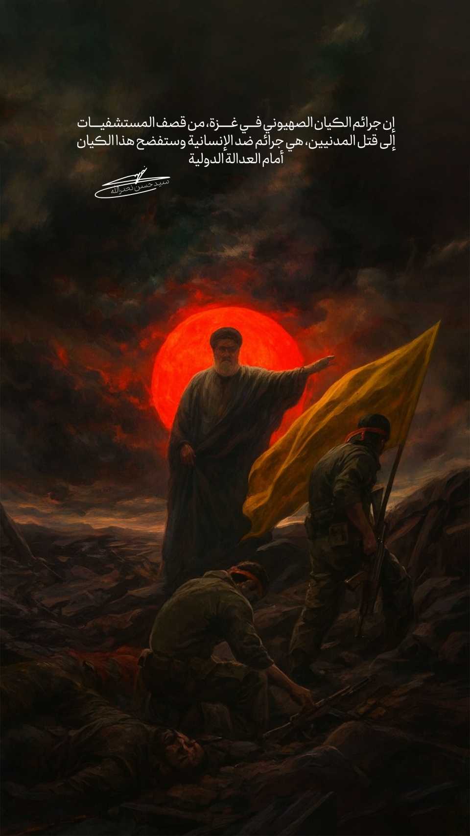 Sunday, September 28, 2025إن جرائم الكيان الصهيوني في غزة، من قصف المستشفيات إلى قتل المدنيين، هي جرائم ضد الإنسانية وستفضح هذا الكيان أمام العدالة الدولية. -سيد حسن نصرالل...