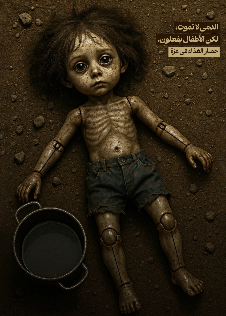 Tuesday, September 30, 2025الدمى لا تموت، لكن الأطفال يفعلون. "حصار الغذاء في غزة"