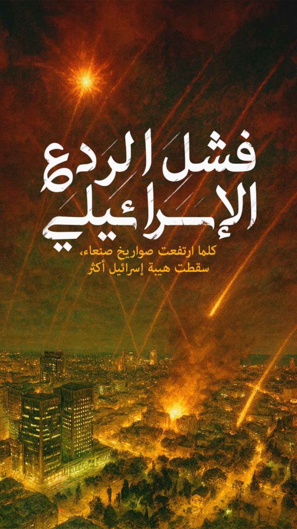 فشل الردع الإسرائيلي كلما ارتفعت صواريخ صنعاء، سقطت هيبة إسرائيل أكثر.